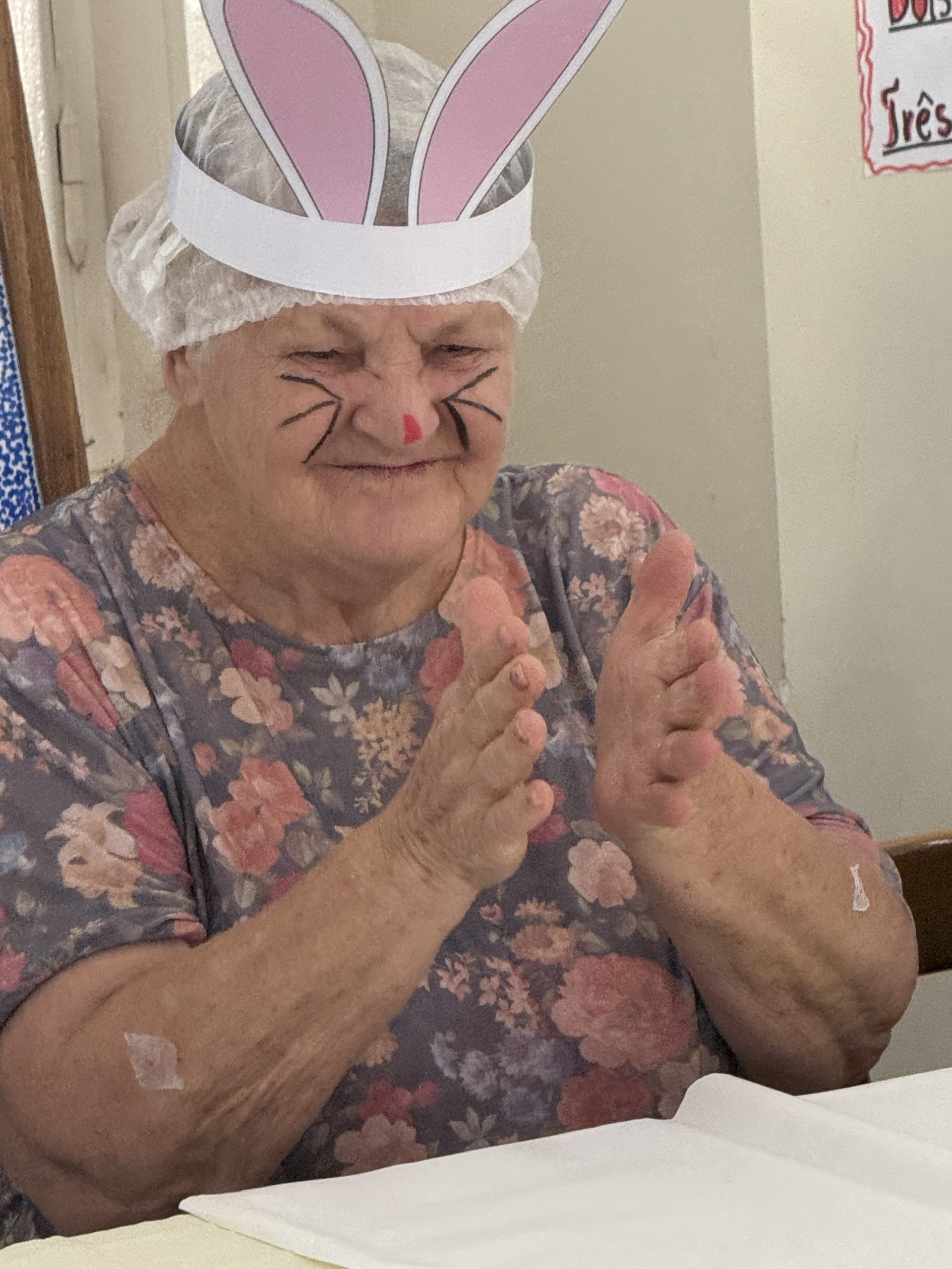 “Não foi difícil, porque eu já fazia esse tipo de atividade. Trabalhei muitos anos com crianças, me aposentei depois de 30 anos em creche, e a gente realizava bastante essas ações, especialmente em datas como o Natal. Então, para mim, está sendo muito especial. O mais bonito é ver essa integração com os demais moradores, todos participando juntos. Isso é ótimo. Desejo uma Páscoa muito bonita para todas as pessoas”, comentou.