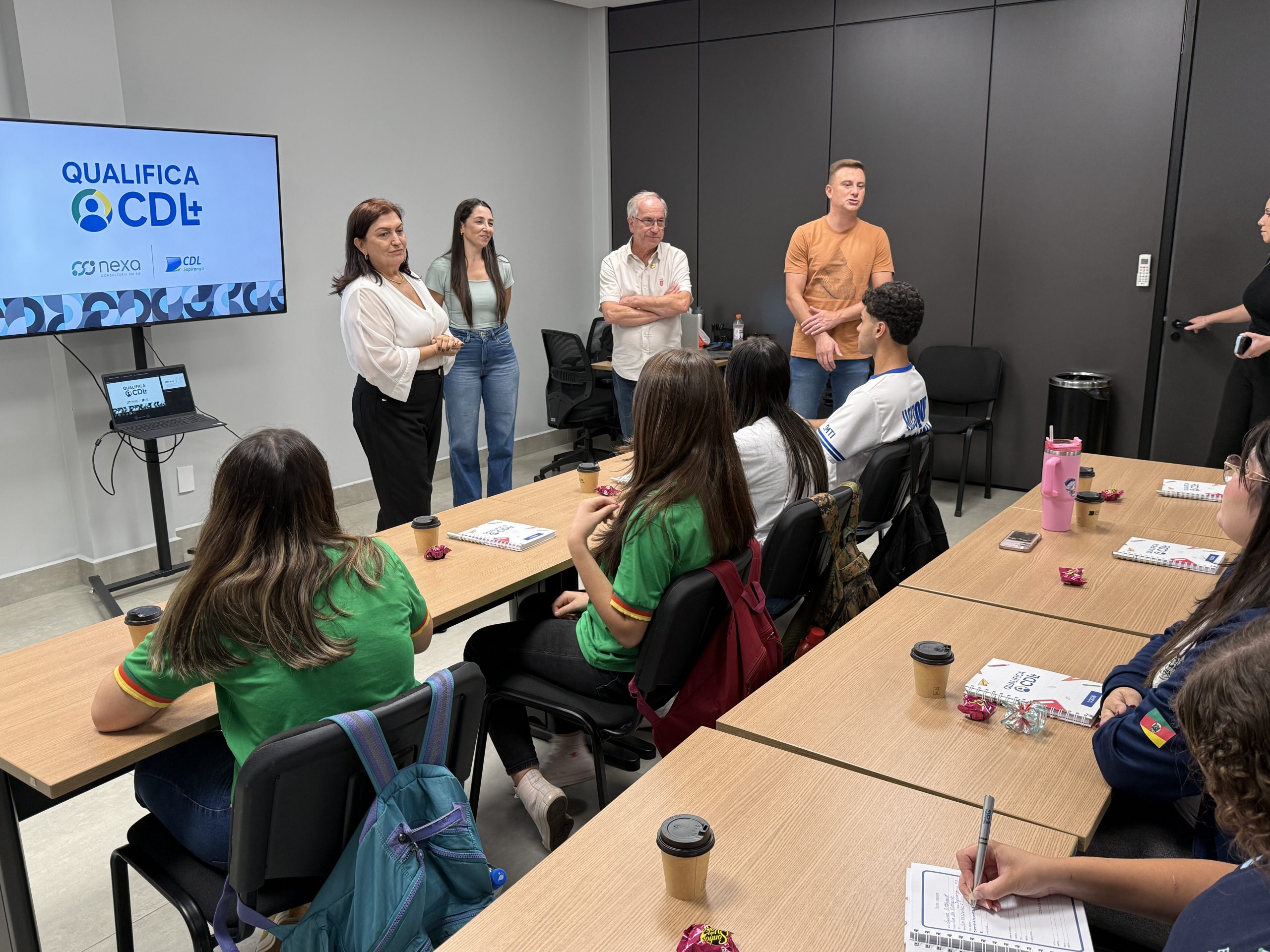 A preparação para o primeiro emprego ganhou um novo capítulo com o início da nova turma do Qualifica CDL, promovido pela Câmara de Dirigentes Lojistas de Sapiranga (CDL Sapiranga), na quinta-feira, 09/04. A primeira atividade marcou a abertura oficial do programa, que seguirá com encontros semanais sempre às quintas-feiras, reunindo estudantes do 2º e 3º ano do ensino médio de instituições como o Instituto Estadual de Educação Sapiranga, o Instituto Estadual Mathilde Zatar e o Centro Sinodal de Ensino Médio de Sapiranga, Unidade Duque. A iniciativa conta com apoio do Sicredi Caminho das Águas e tem como objetivo qualificar jovens para os desafios do ambiente profissional por meio de uma formação contínua e aplicada.